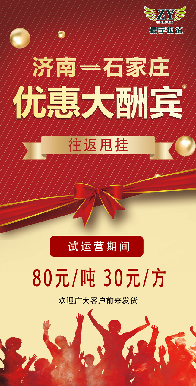 熱烈祝賀振宇物流9.13号開通濟南到石家莊專線!往返甩挂,優惠多多!