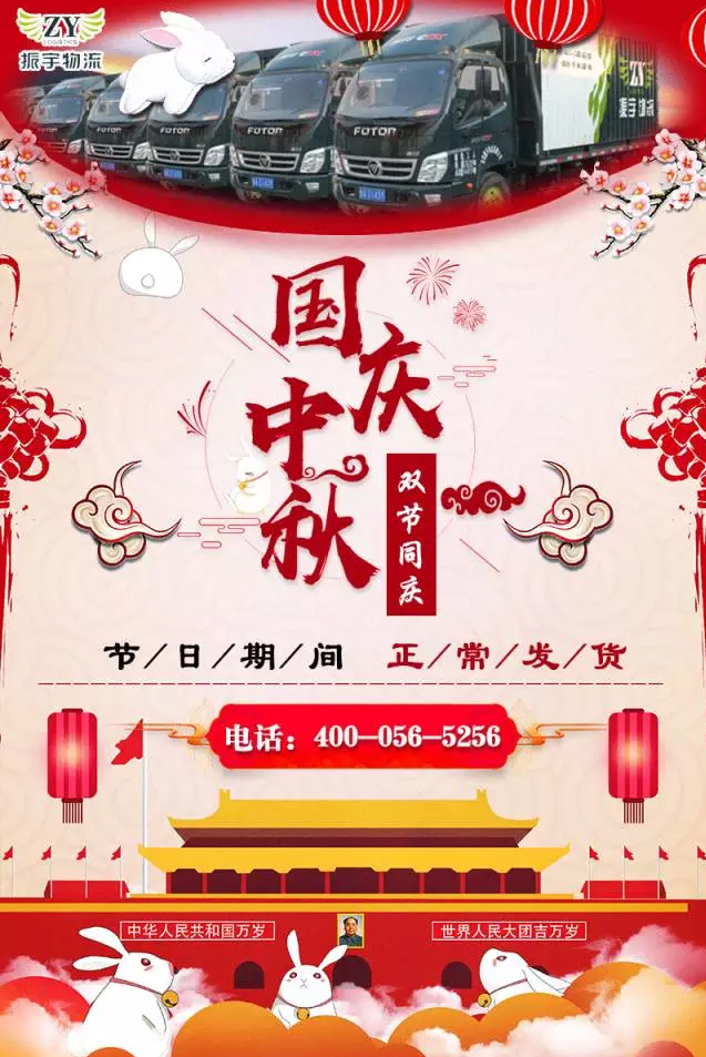 振宇物流各個網點正常營業,雙節期間班車(chē)彈(dàn)性發車(chē),時效或順延一天,請您給下遊客戶做好溝通解釋!