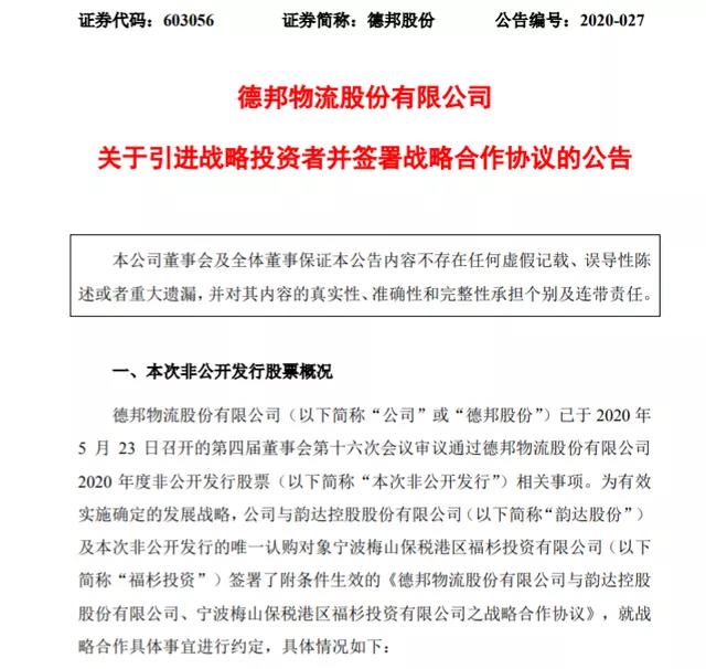 濟南物流公司:韻達戰略投資德邦,占股約6.5%,快遞投資並購好戲開始?