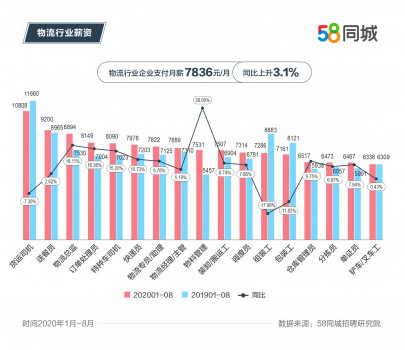 薪酬水平也是物流行業就業的重要指标,58同城招聘研究院數據顯示,今年1-8月,交通運輸、倉(cāng)儲(chǔ)和郵政業支付月薪達到7836元,同比上升3.1%。典型職位中,貨運司機支付月薪第一,達到10808元;送餐員支付月薪排名第二,爲9200元;物料管理支付月薪同比上升最快,增幅38%,月薪達(dá)到7531元。可見,物流行業崗位薪資與崗位技術含量、市場(chǎng)需求、勞動強度密切相關,技術含量高、市場(chǎng)需求大、勞動強度大的崗位收入更高。