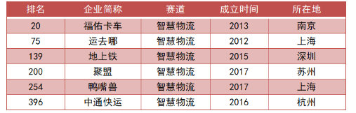 另外,排名前100的企業有第20位的福佑卡車和第75位的運去哪。福佑卡車作爲技術驅動型公路貨運平台,近日已赴美遞交IPO申請,計劃在納斯達克上市。而一站式國際物流在線服務平台於(yú)前日宣布獲得中信資本領投,襄禾資本和老股東跟投的新一輪融資,D1輪累計融資額達1.5億美元,總融資金額超過瞭(le)3億美元。