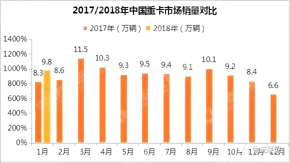 據統計數據顯示,自2016年10月開始延續至2017年10月,國内重卡市場(chǎng)連續13個月爆發式增長(zhǎng)!2017年全年,國内重型貨車産(chǎn)量爲114.97萬輛,同比增長55.07%,銷量爲111.69萬輛,同比增長52.38%。而18年1月重卡市場的“開門紅”除瞭(le)同環比雙雙增長(zhǎng)以外,同時也打破瞭(le)去年1月銷量8.3萬輛的紀錄。