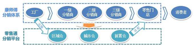 因此雙方在2018年11月達(dá)成瞭(le)整體合作,康師傅将借助阿裏零售通平台,推進門店數字化、供應鏈數字化、營銷數字化和決策數字化等在内的一系列升級優化,構建智能分銷網絡,爲傳(chuán)統線下銷售渠道接入“中央處(chù)理器”。具體做法是康師傅将組織全國分銷網絡的客戶加入零售通平台,分銷商向工廠(chǎng)下單(dān)、夫妻老婆店向分銷商下單(dān)均使用零售通的線上電商平台,貨物視情況入到菜鳥系的倉(cāng)庫,收到訂單(dān)後借助區域倉(cāng)、城市倉(cāng)、前置倉(cāng)等不同類型的倉(cāng)庫,以較短時效送達(dá)門店店主手裏。康師傅的商流、信息流、物流、資金流在阿裏零售通體系中流轉,物流鏈路變(biàn)短,中轉裝卸次數(shù)變(biàn)少,周轉效率更高。